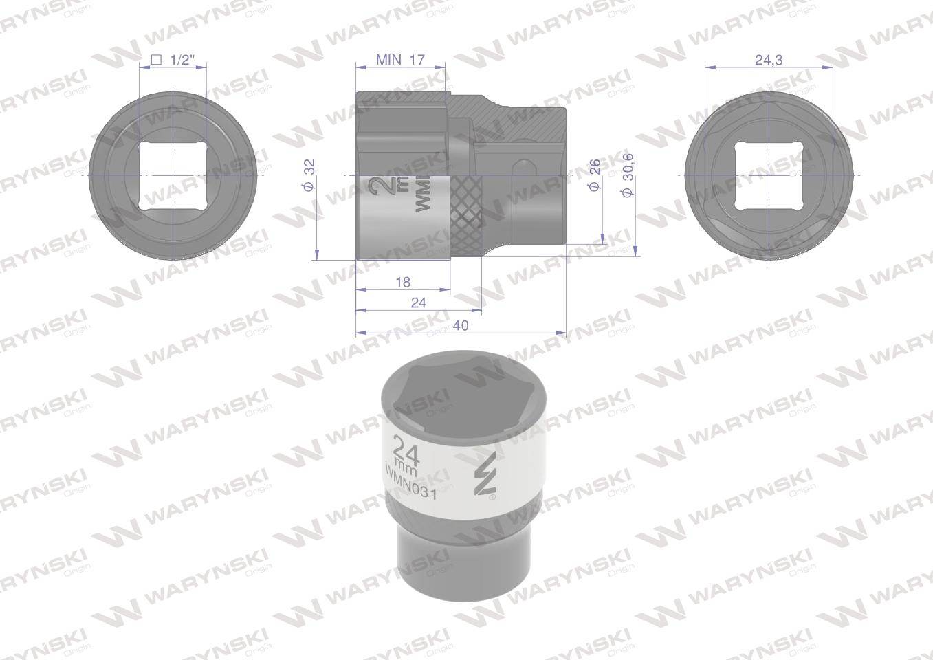 Nasadka sześciokątna 1/2″ 24mm crv50bv30 din 3124 waryński