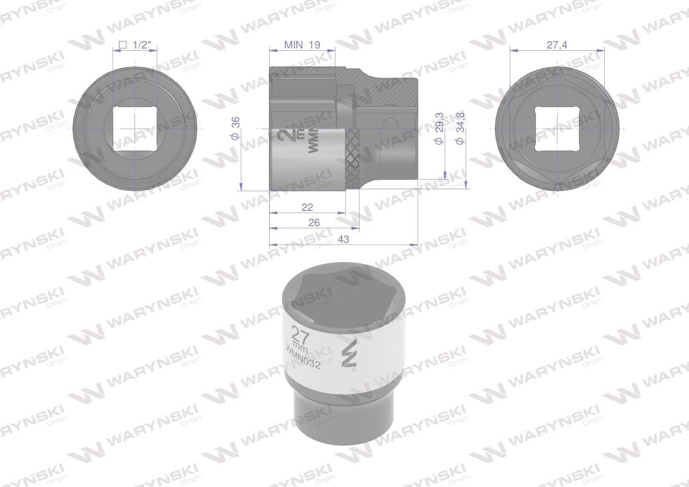 Nasadka sześciokątna 1/2″ 27mm crv50bv30 din 3124 waryński