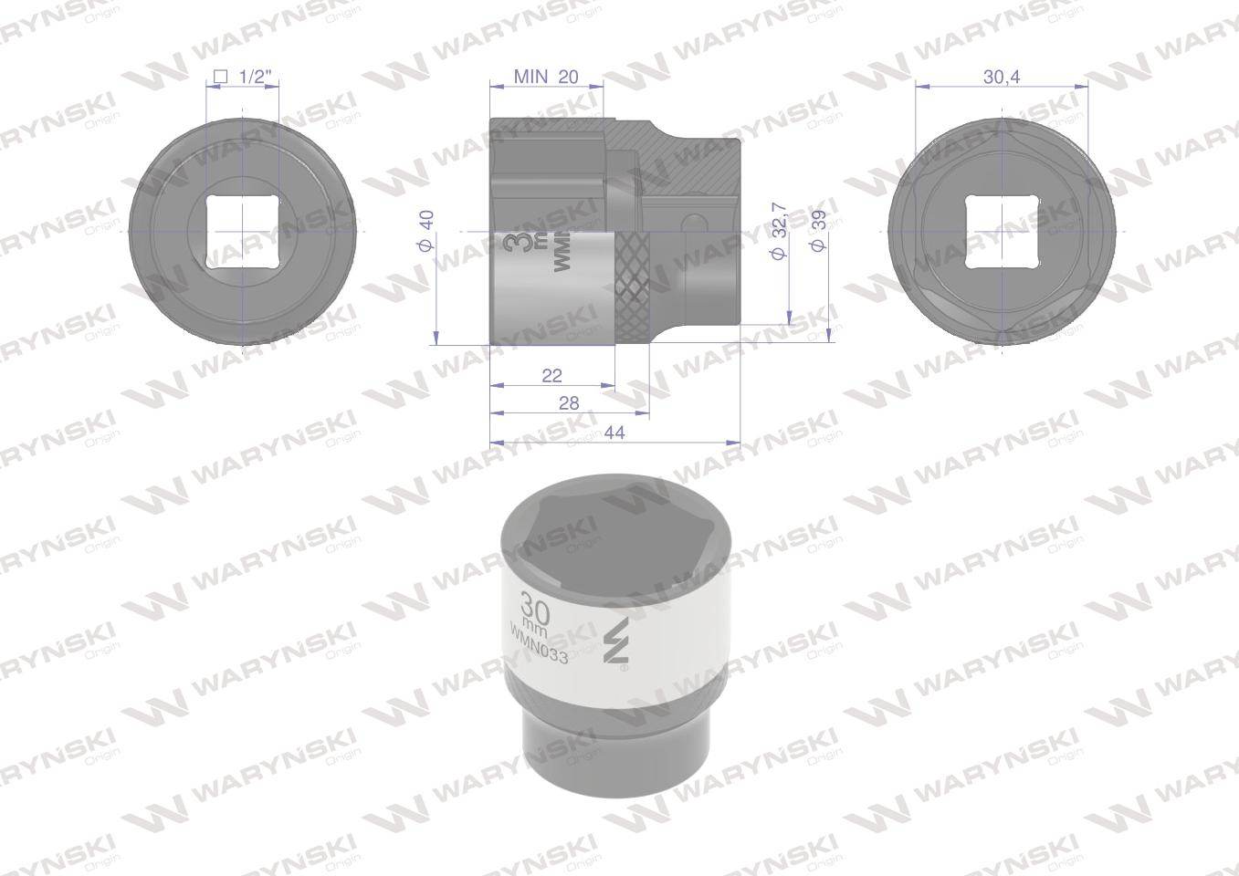 Nasadka sześciokątna 1/2″. 30 mm. Crv50bv30. Din 3124. Waryński