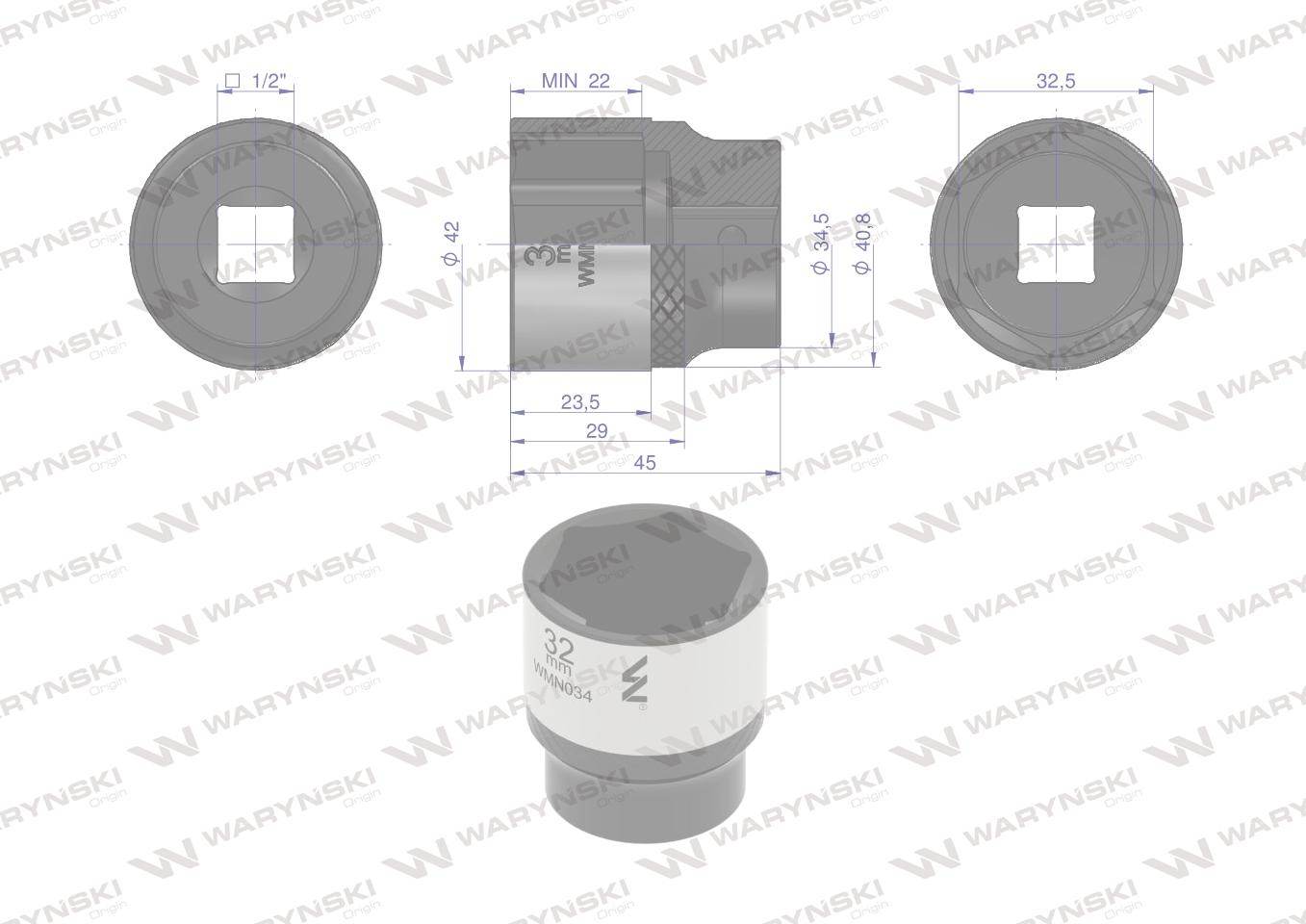 Nasadka sześciokątna 1/2″ 32mm crv50bv30 din 3124 waryński
