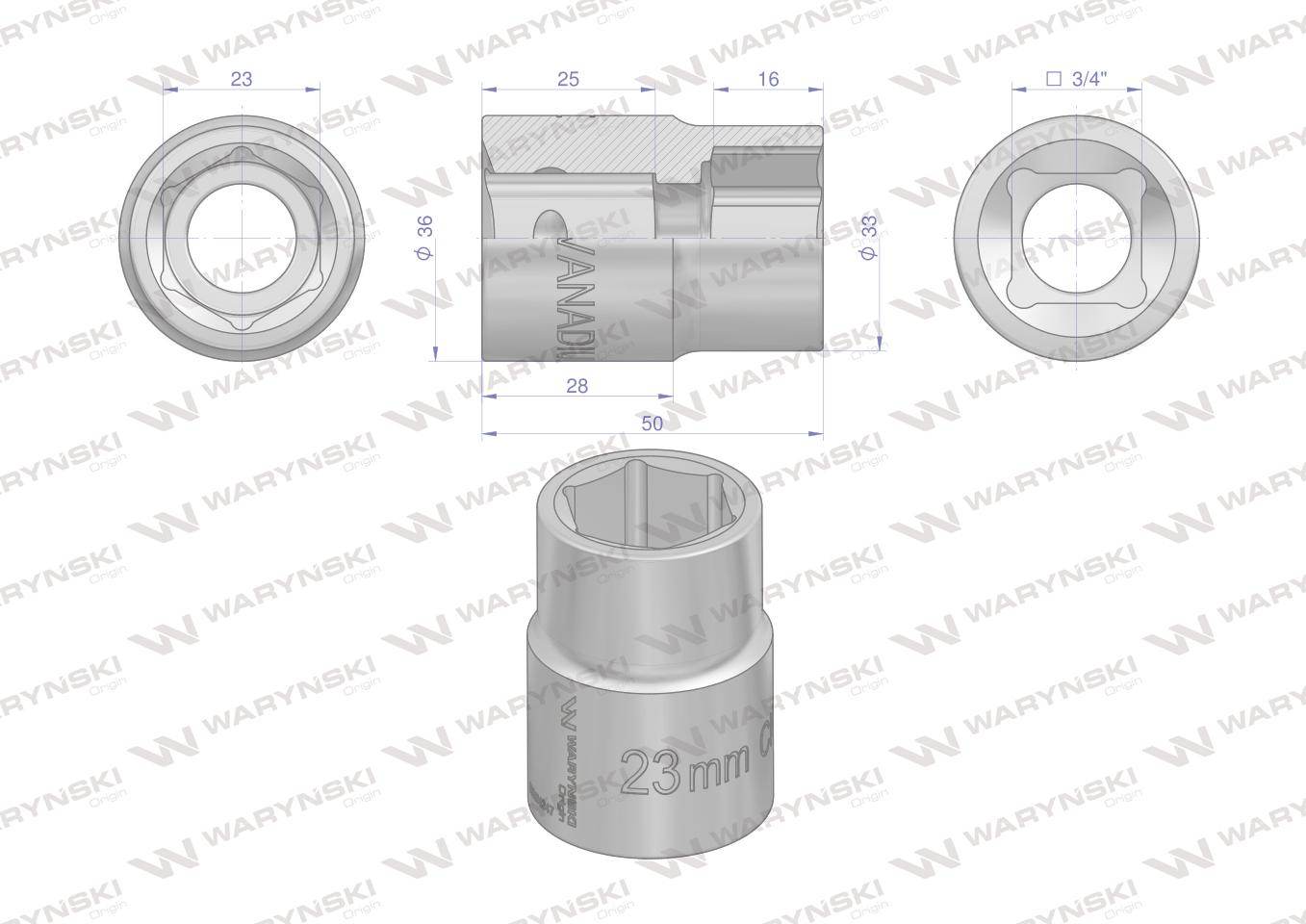 Nasadka sześciokątna 3/4" 23mm crv50bv30 din 3124 waryński