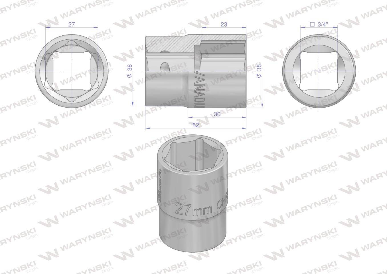 Nasadka sześciokątna 3/4" 27mm crv50bv30 din 3124 waryński