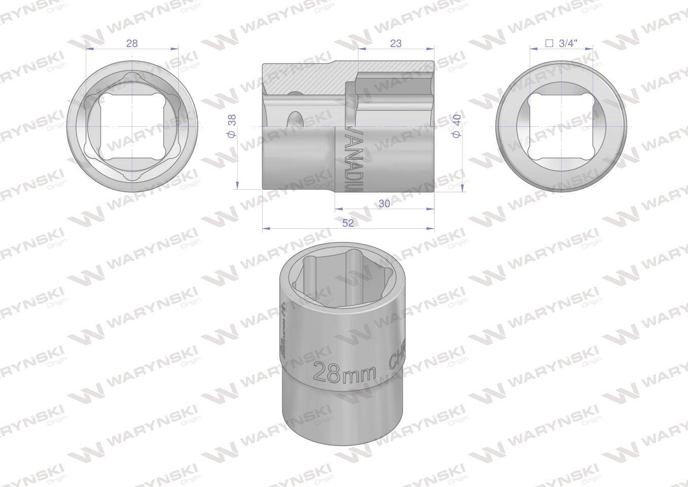 Nasadka sześciokątna 3/4″ 28mm crv50bv30 din 3124 waryński