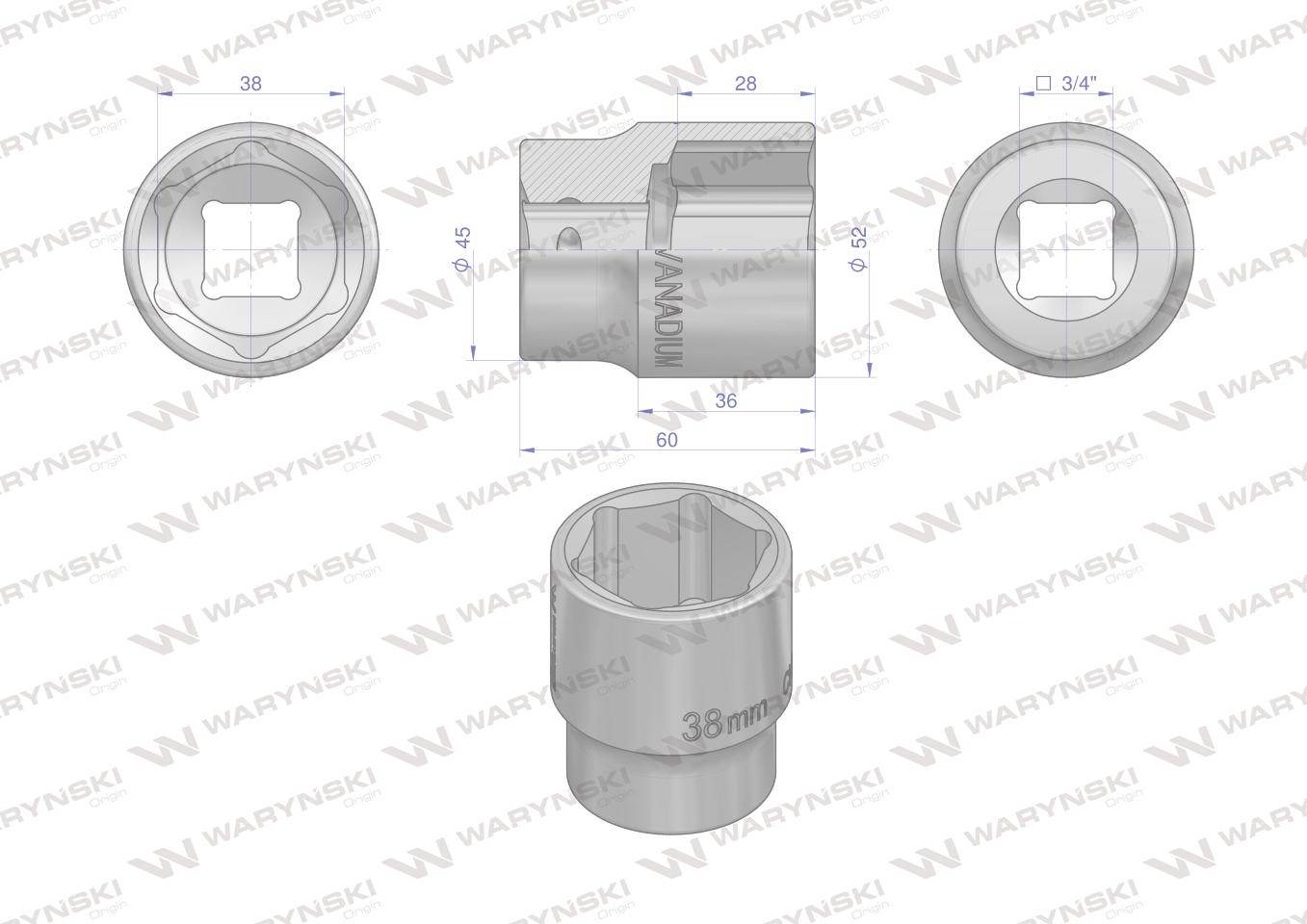 Nasadka sześciokątna 3/4" 38mm crv50bv30 din 3124 waryński