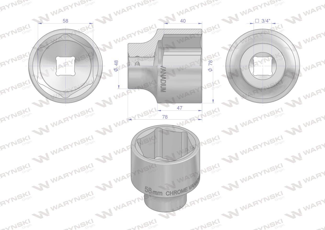 Nasadka sześciokątna 3/4" 58mm crv50bv30 din 3124 waryński