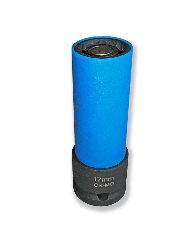 Nasadka udarowa 1/2 ze wzmocnionej i odpornej na udar stali crmo, z magnesem ułatwiającym podjęcie nakrętki lub śruby kodowana kolorem z osłoną z tworzywa do felg aluminiowych 17mm waryński