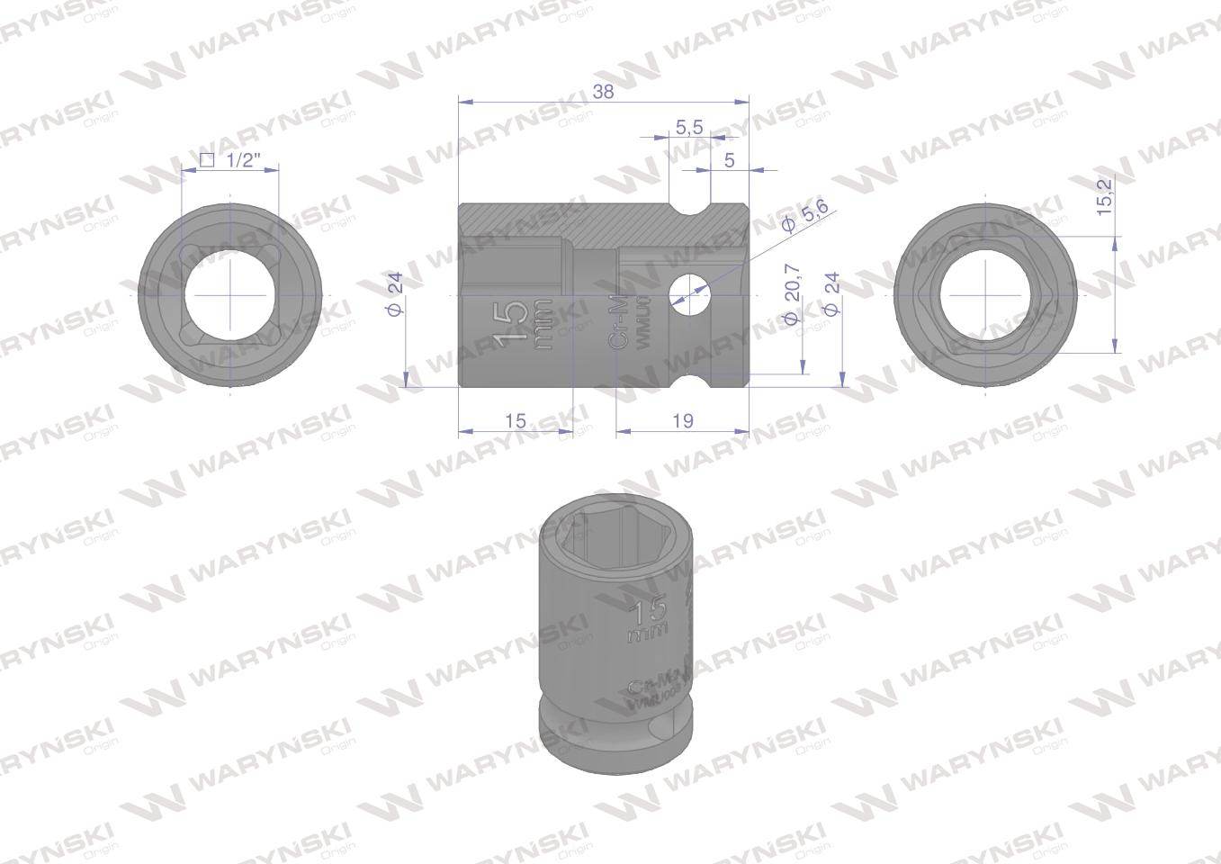 Nasadka udarowa sześciokątna 1/2″ 15mm crmo din 3129 waryński