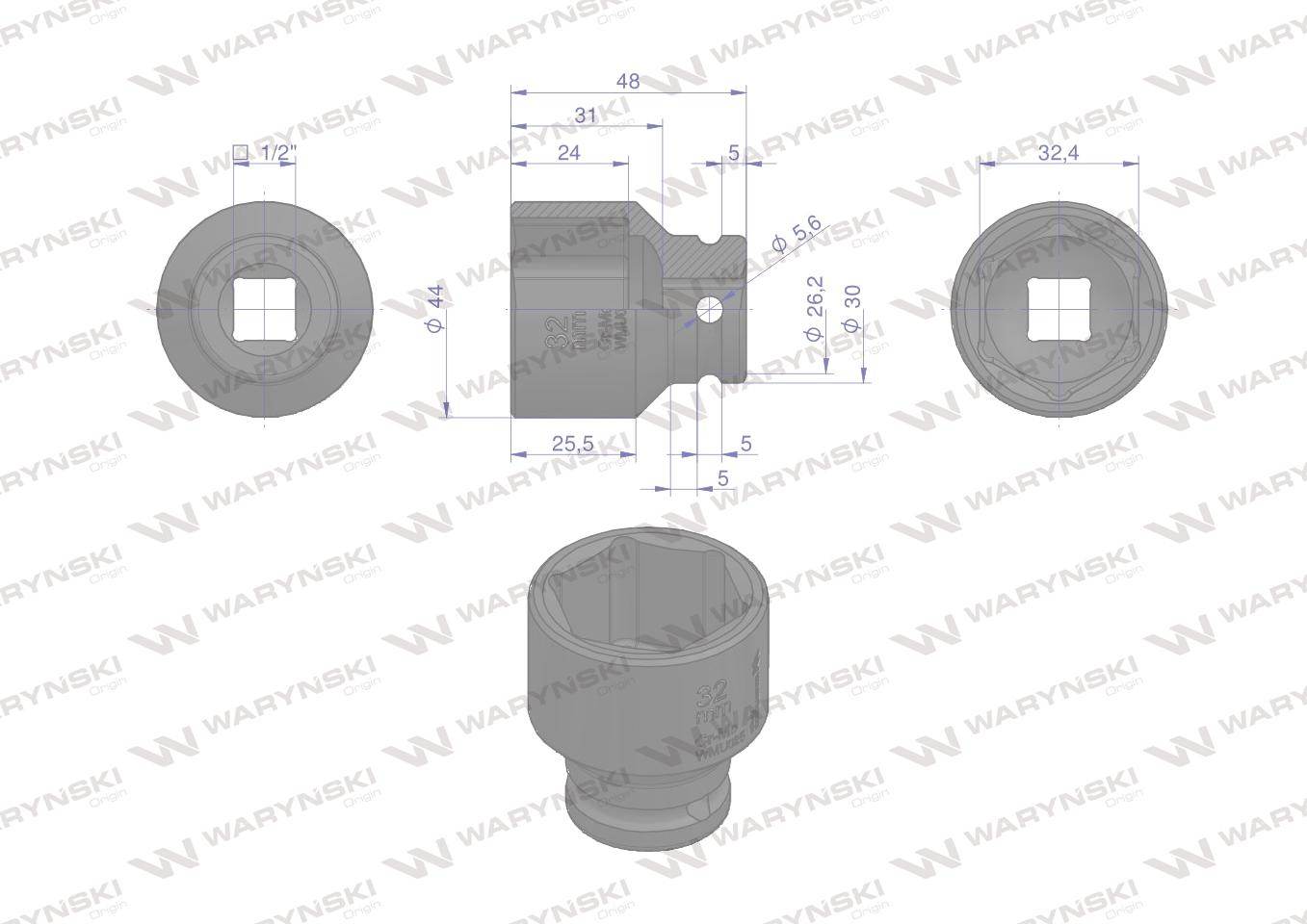 Nasadka udarowa sześciokątna 1/2″ 32mm crmo din 3129 waryński