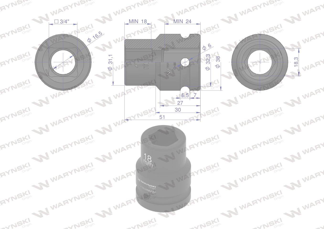 Nasadka udarowa sześciokątna 3/4″ 18mm crmo din 3129 waryński