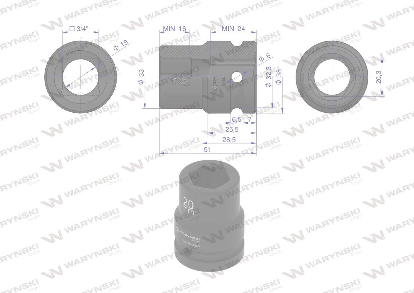 Nasadka udarowa sześciokątna 3/4″ 20mm crmo din 3129 waryński