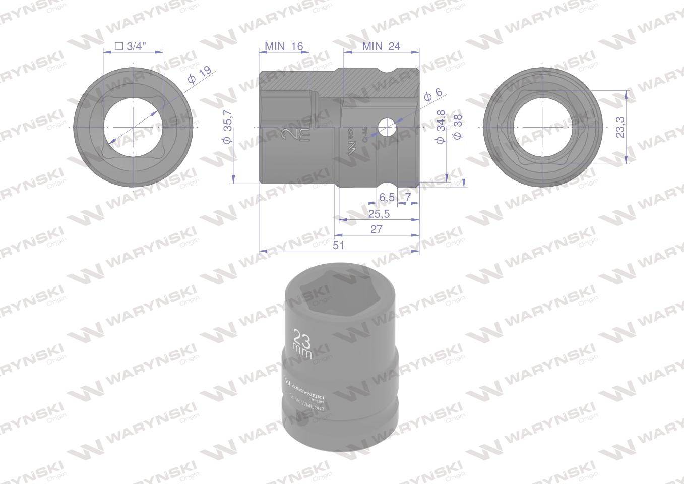 Nasadka udarowa sześciokątna 3/4″ 23mm crmo din 3129 waryński