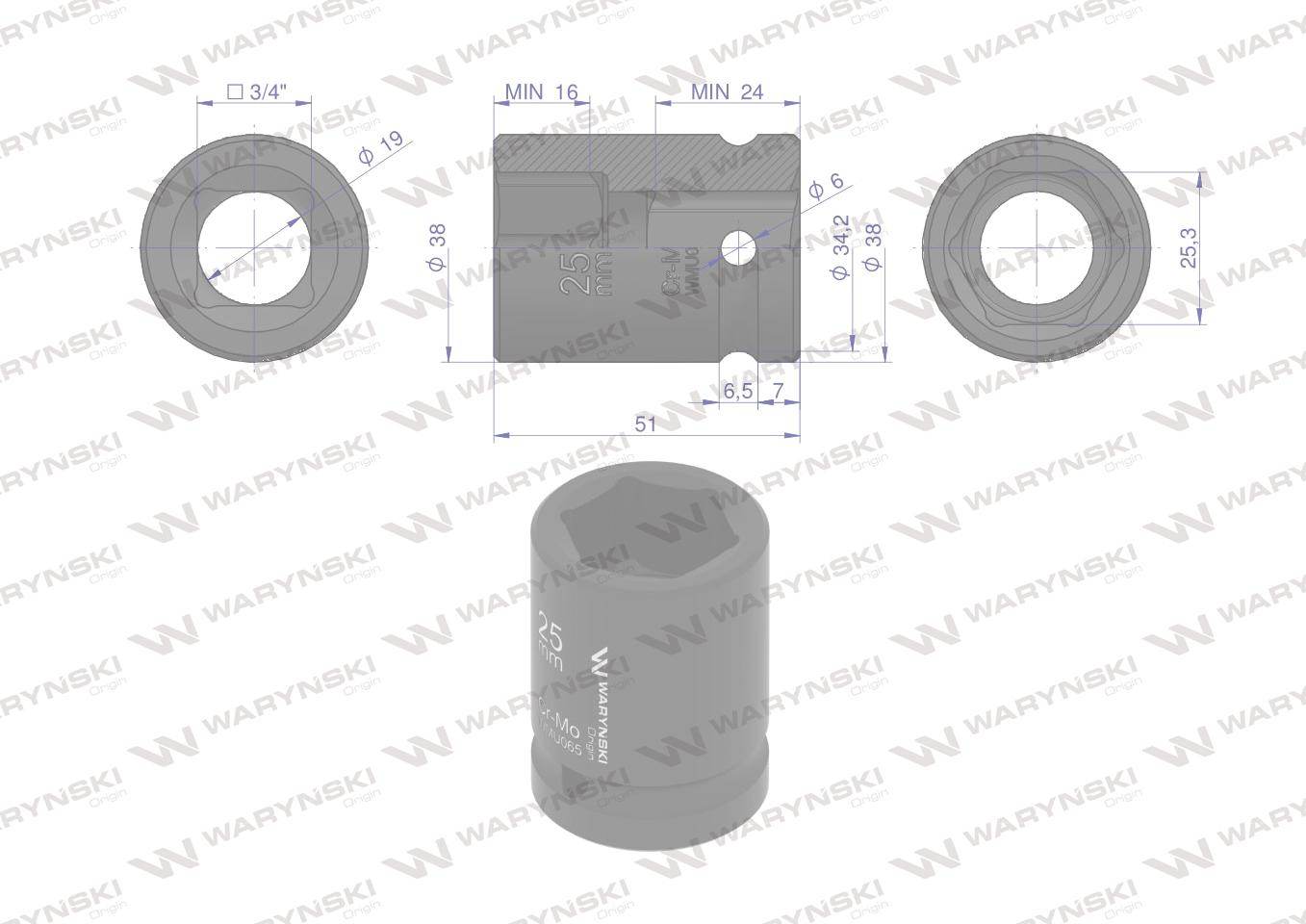 Nasadka udarowa sześciokątna 3/4" 25mm crmo din 3129 waryński