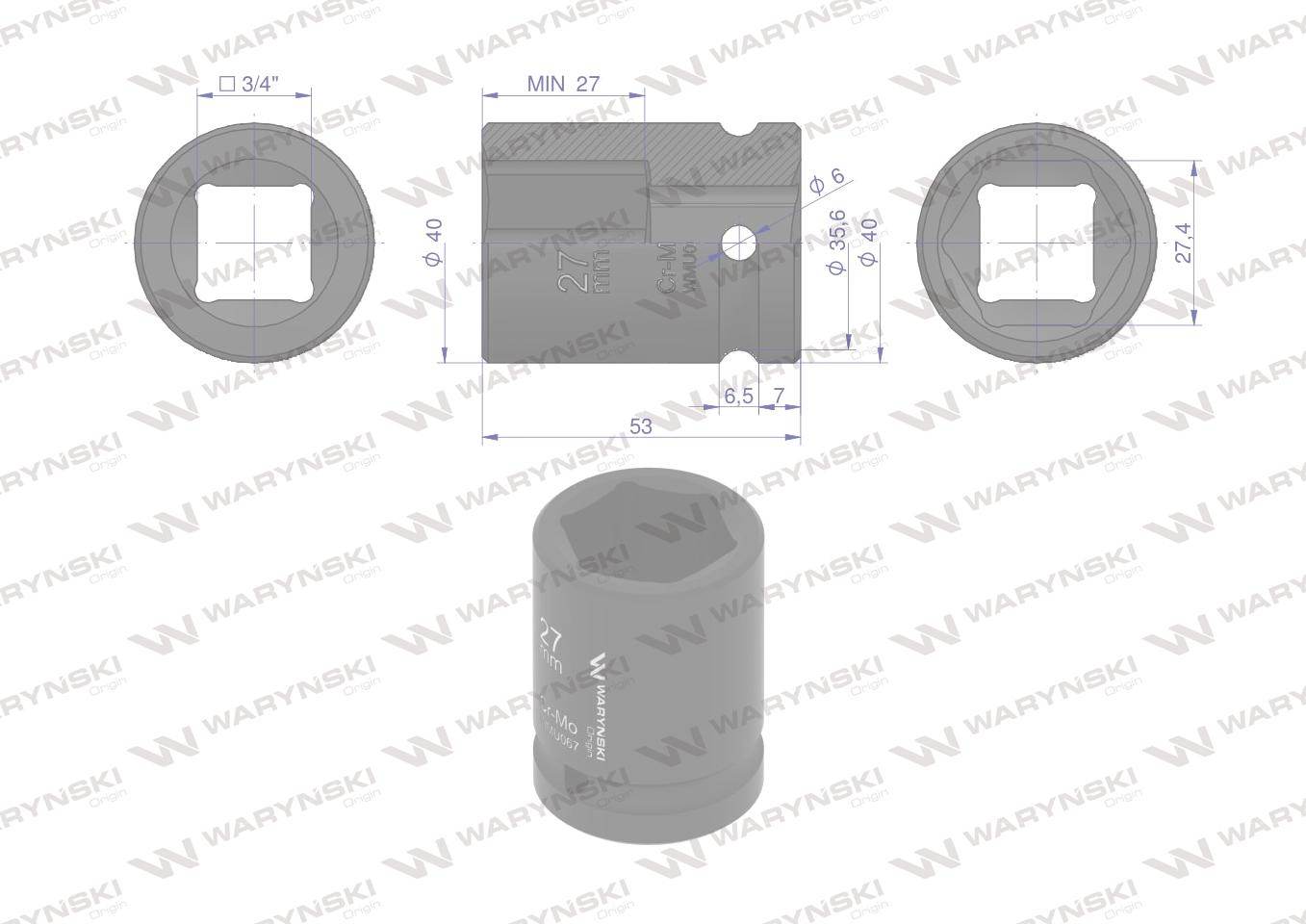 Nasadka udarowa sześciokątna 3/4″ 27mm crmo din 3129 waryński