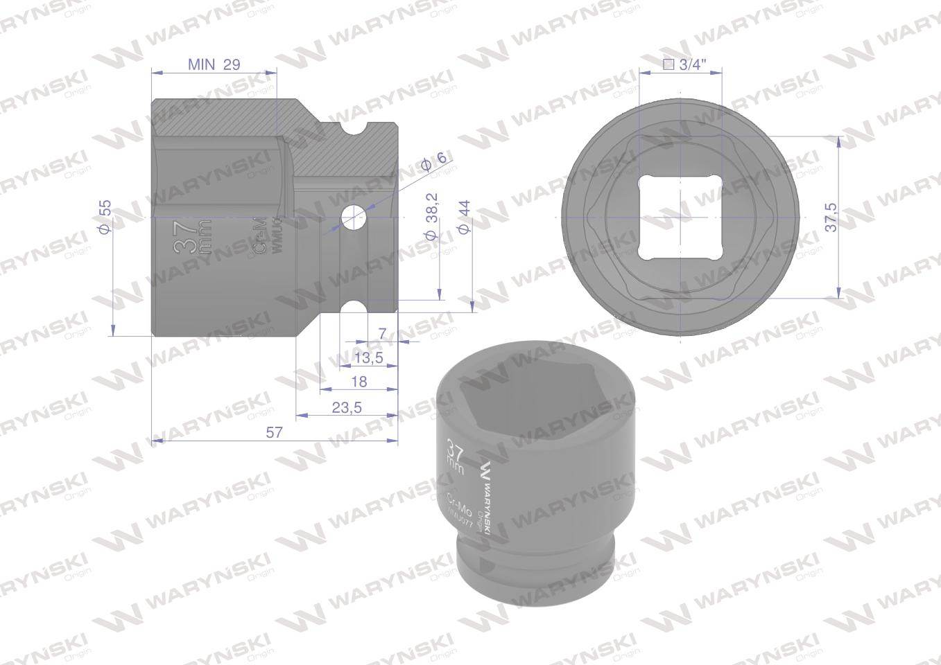 Nasadka udarowa sześciokątna 3/4″ 37mm crmo din 3129 waryński