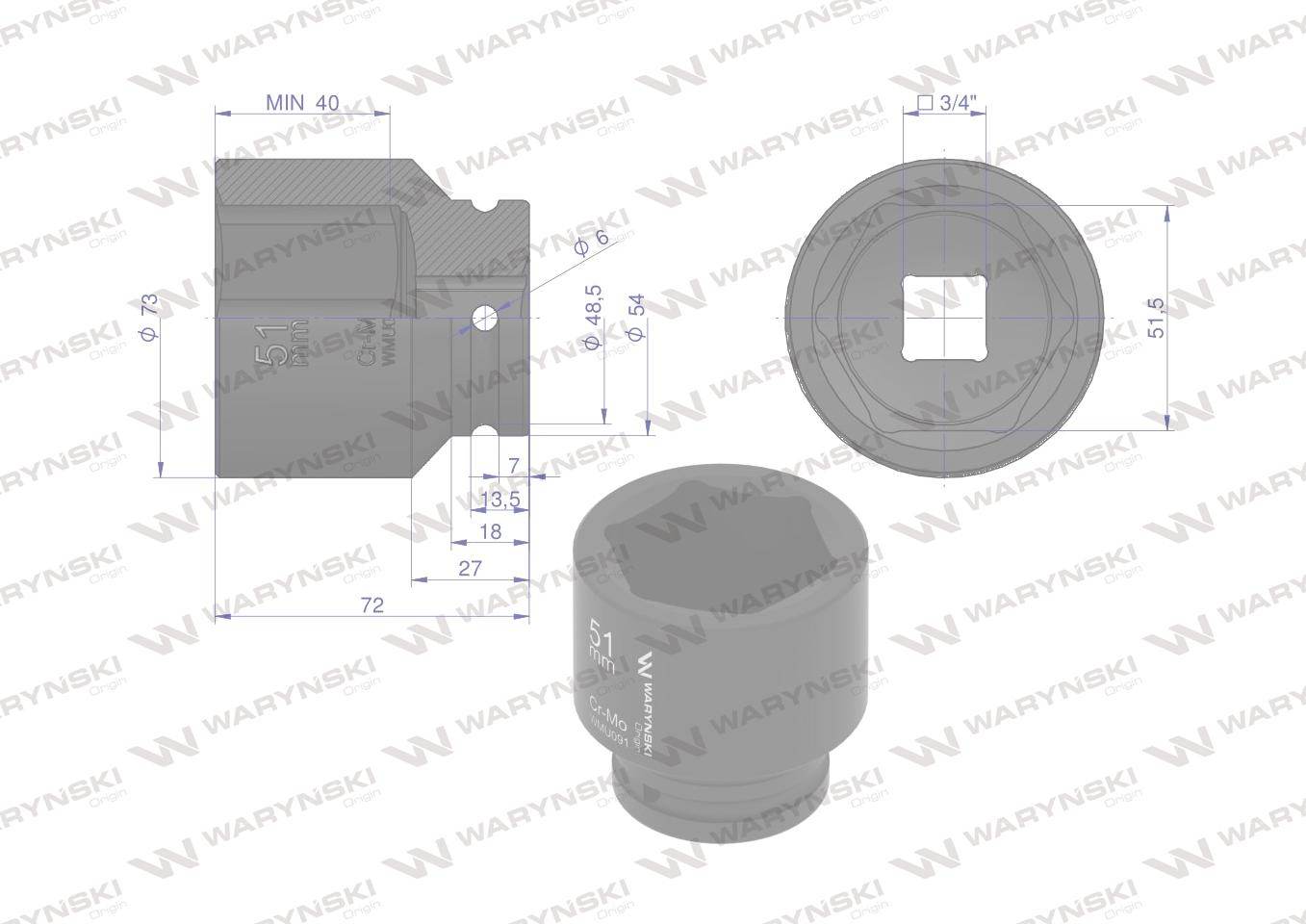 Nasadka udarowa sześciokątna 3/4" 51mm crmo din 3129 waryński