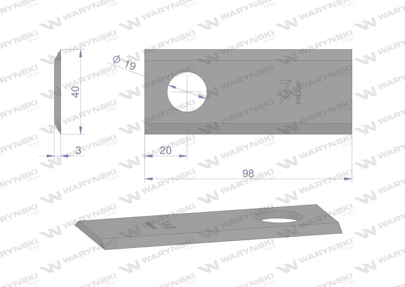 Nóż nożyk kosiarka 98x40x3mm otwór 19 58029045 bcs waryński 25szt