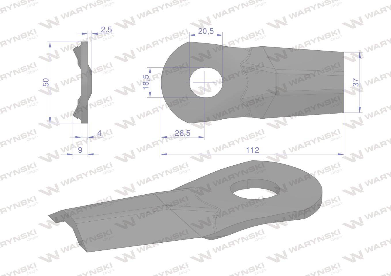 Nóż nożyk kosiarka gięty 112x50x4mm otwór 18.5×20.5 5684000 kuhn waryński 25szt
