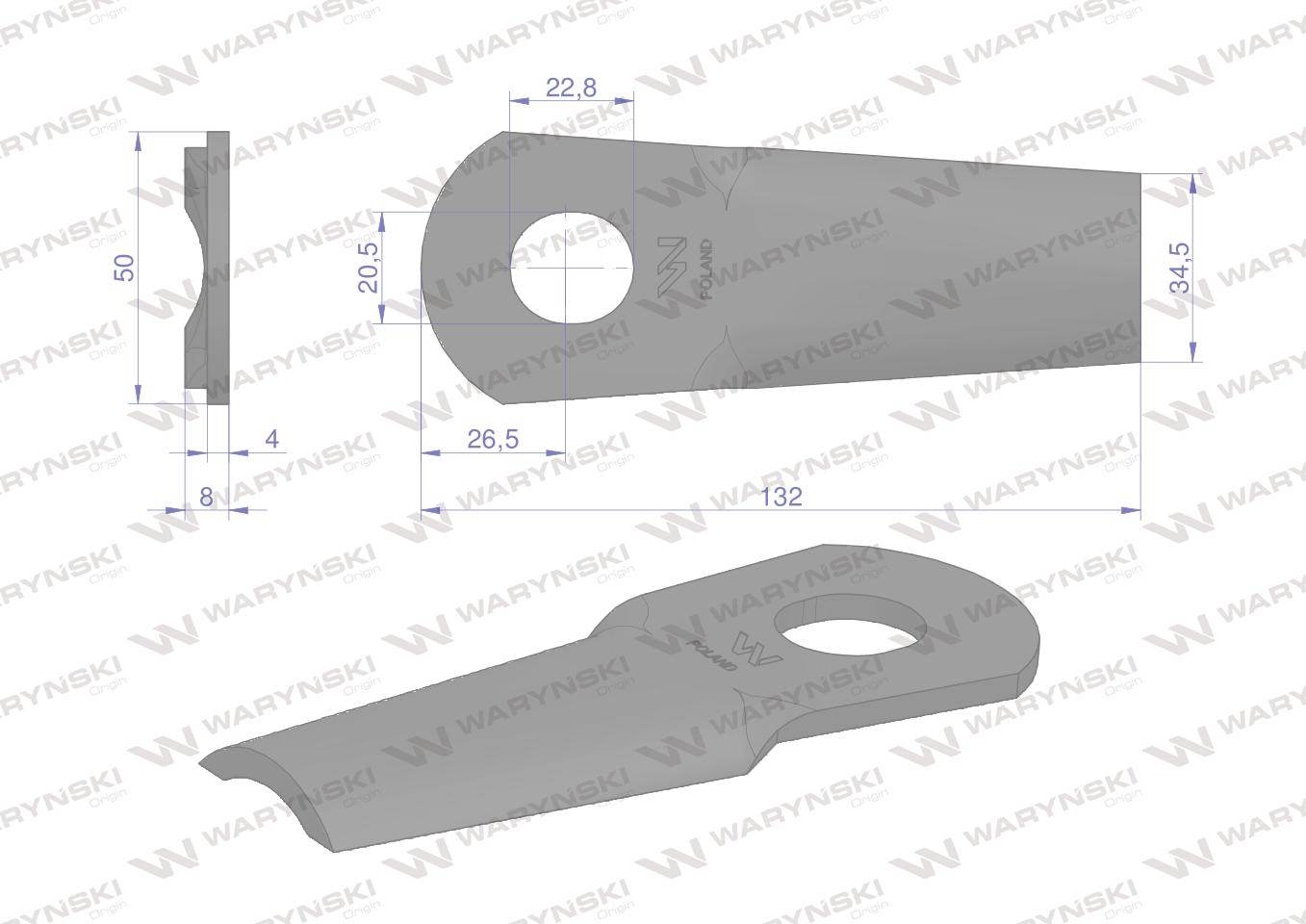 Nóż nożyk kosiarka gięty 132x50x4mm otwór 20.5x23 13800013 jf-stoll waryński 25szt