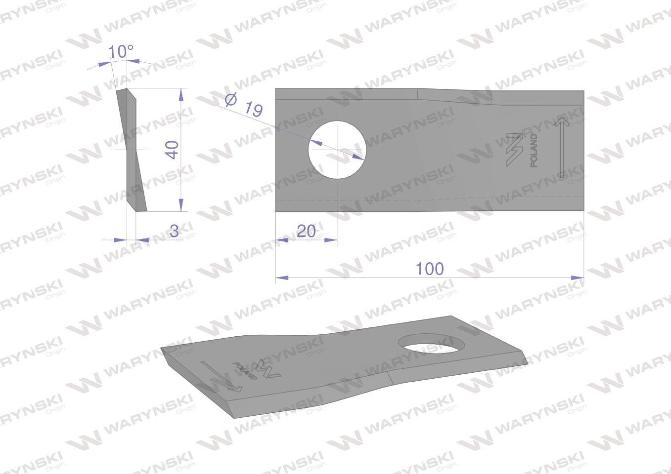 Nóż nożyk kosiarka lewy 100x40x3mm otwór 19 580290966 bcs sipma waryński 25szt