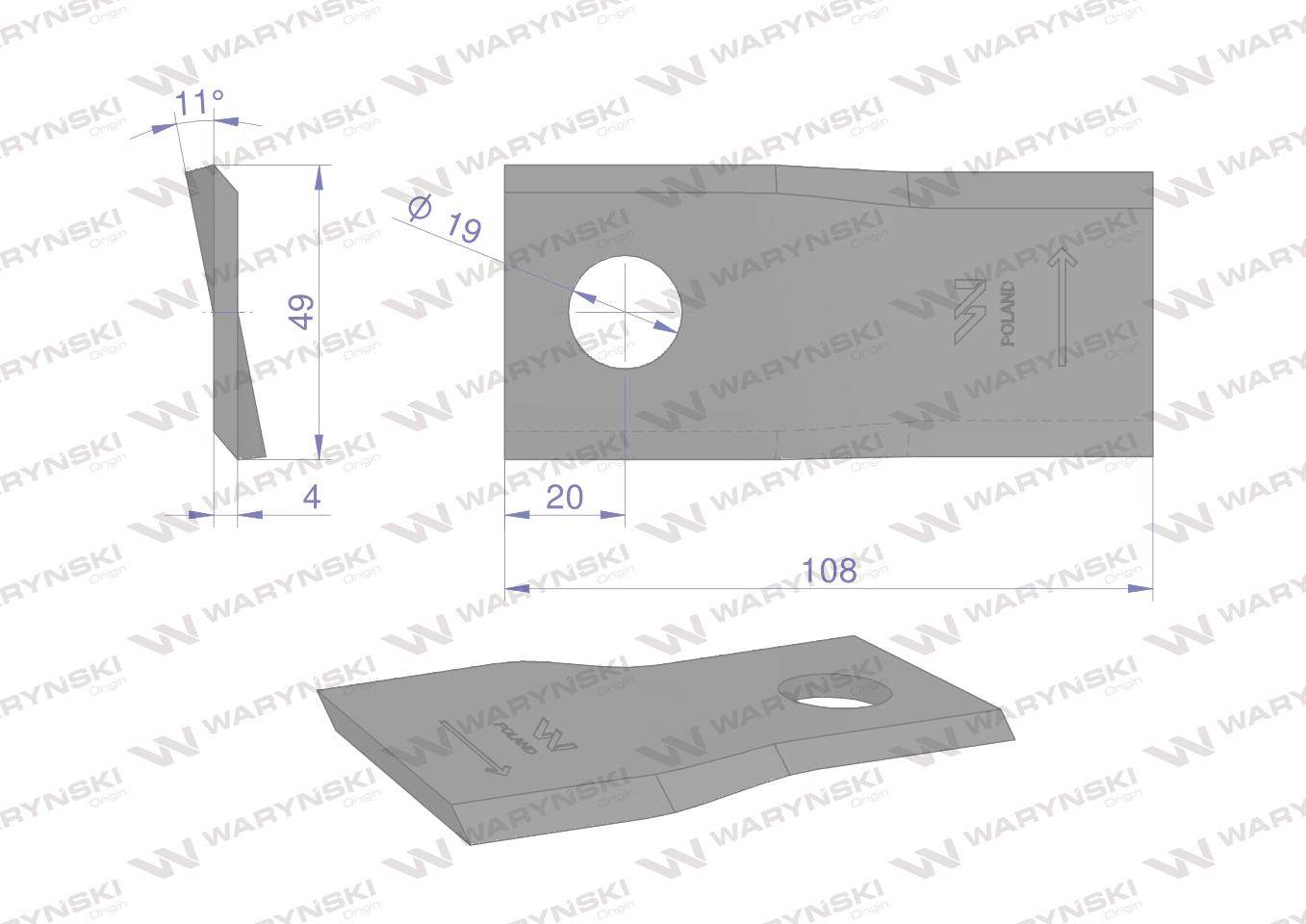Nóż nożyk kosiarka lewy 108x47x4mm otwór 19 1434985 pottinger waryński 25szt