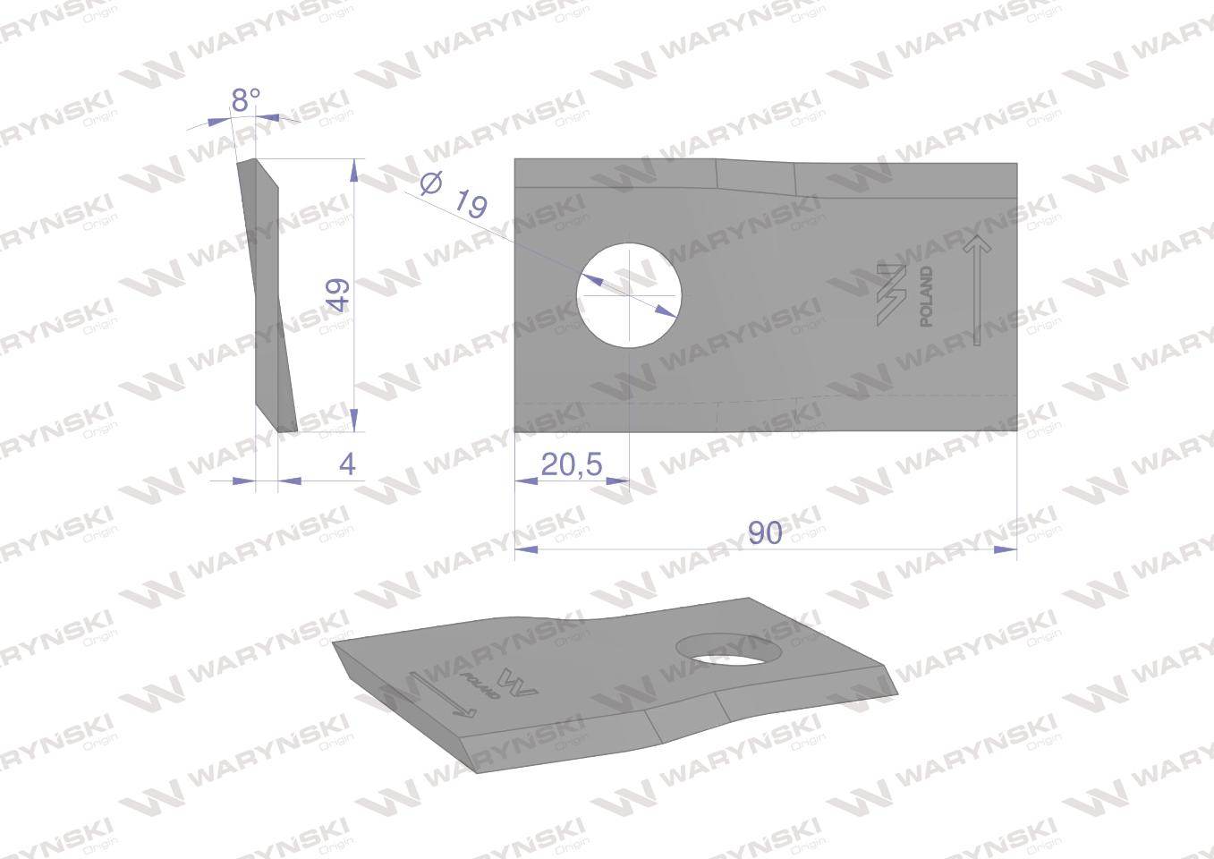 Nóż nożyk kosiarka lewy 90x48x4mm otwór 19 1448251 krone waryński 25szt