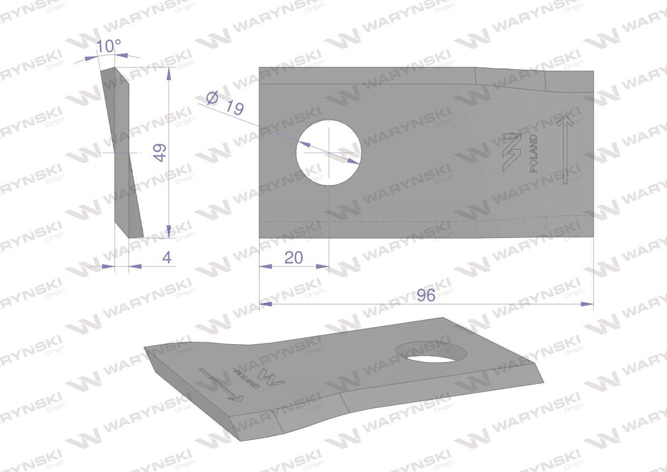 Nóż nożyk kosiarka lewy 96x48x4mm otwór 19 16503465 deutz-fahr waryński 25szt
