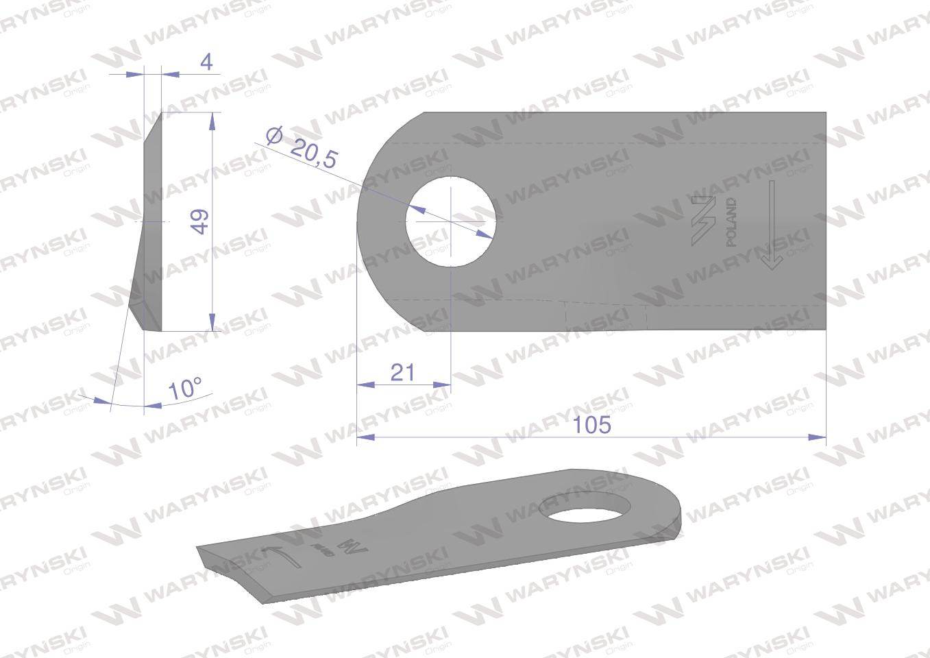 Nóż nożyk kosiarka prawy 105x47x4mm otwór 20.5 6802980 kuhn waryński 25szt