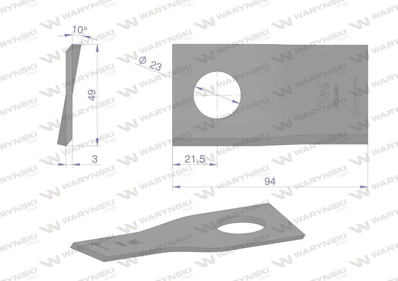 Nóż nożyk kosiarka prawy 94x48x3mm otwór 23 t673r mortl waryński 25szt