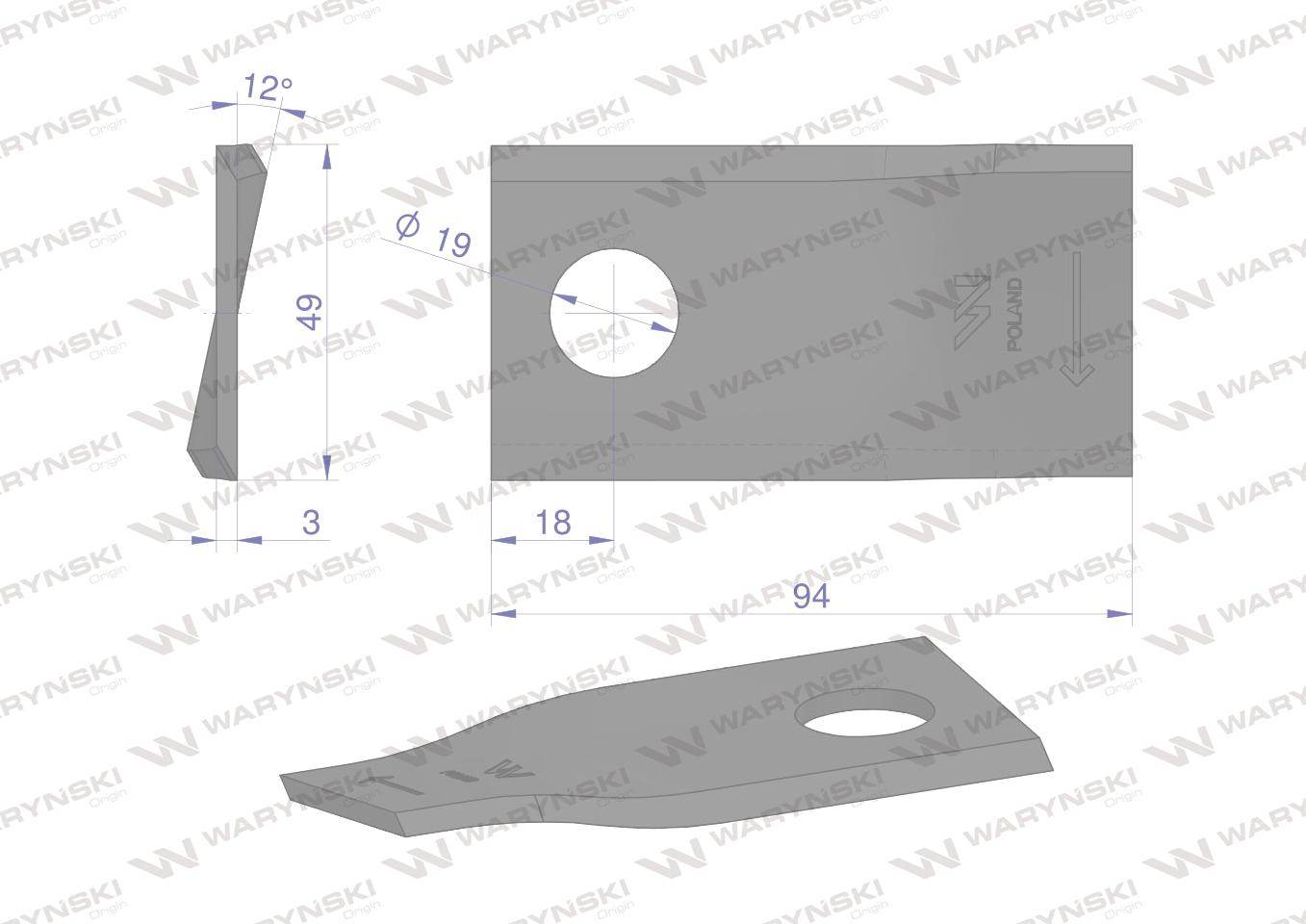 Nóż nożyk kosiarka prawy 94x48x4mm otwór 19 tf-70 kverneland taarup waryński 25szt