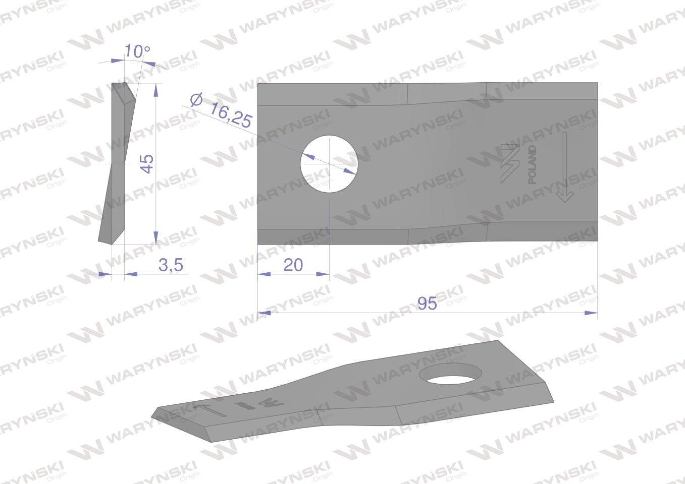 Nóż nożyk kosiarka prawy 95x45x3.5mm otwór 16.25 cc20501 new holland waryński 25szt