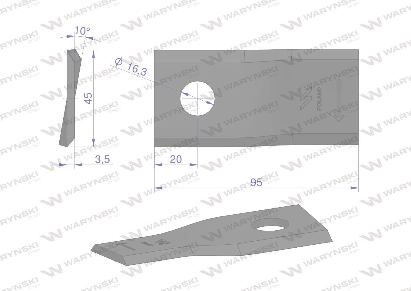 Nóż nożyk kosiarka prawy 95x46x3,5mm otwór 16.25 56151310 kuhn waryński 25szt