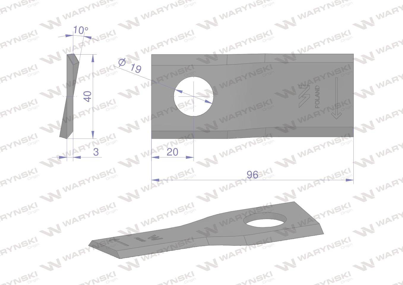 Nóż nożyk kosiarka prawy 96x40x3mm otwór 19 16502726 deutz fahr kverneland waryński 25szt