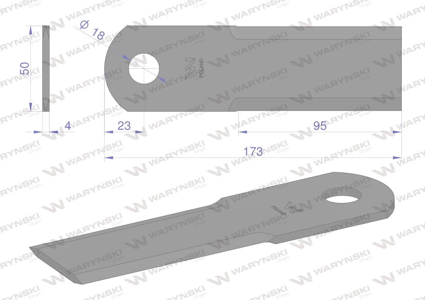 Nóż, obrotowy rozdrabniacz słomy sieczkarnia 173x50x4mm otwór 18 746813 new holland waryński, waryński