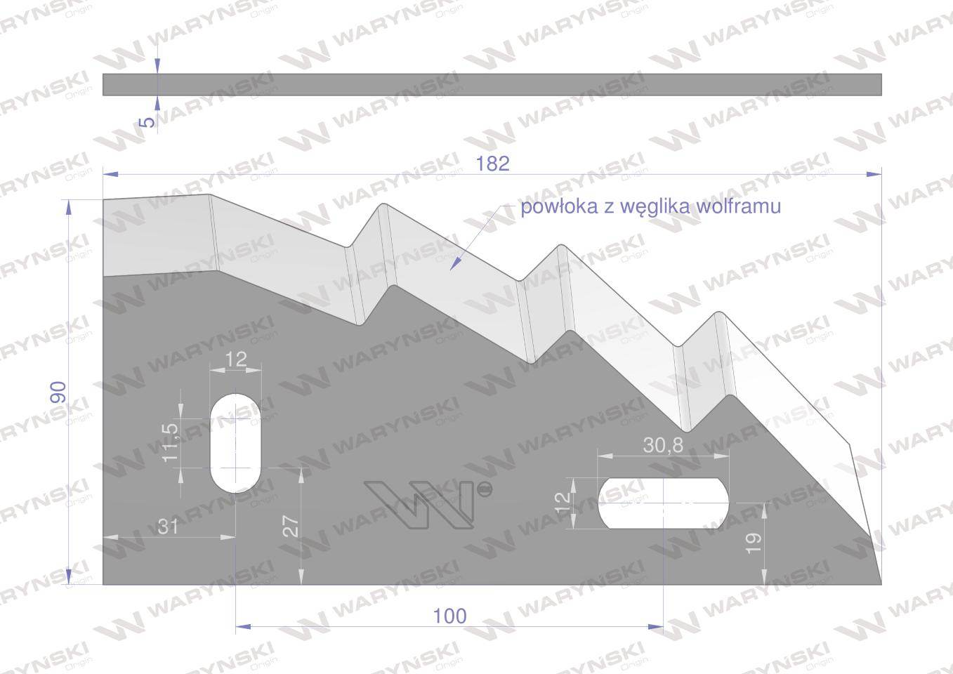Noże do wozu paszowego waryński. Wysokiej jakości noże do paszowozów z hartowanym ostrzem i dodatkowym napawaniem. Wykonane ze starannie dobranego gatunku stali wysokowęglowej ostrza poddane obróbce cieplnej osiągają wysoką twardość – 55hrc nóż pokryty trudnościeralnym napawaniem, charakteryzującym się dużą odpornością na ścieranie. Noże marki waryński gwarantują dużą dokładność cięcia przez długi okres eksploatacji.
