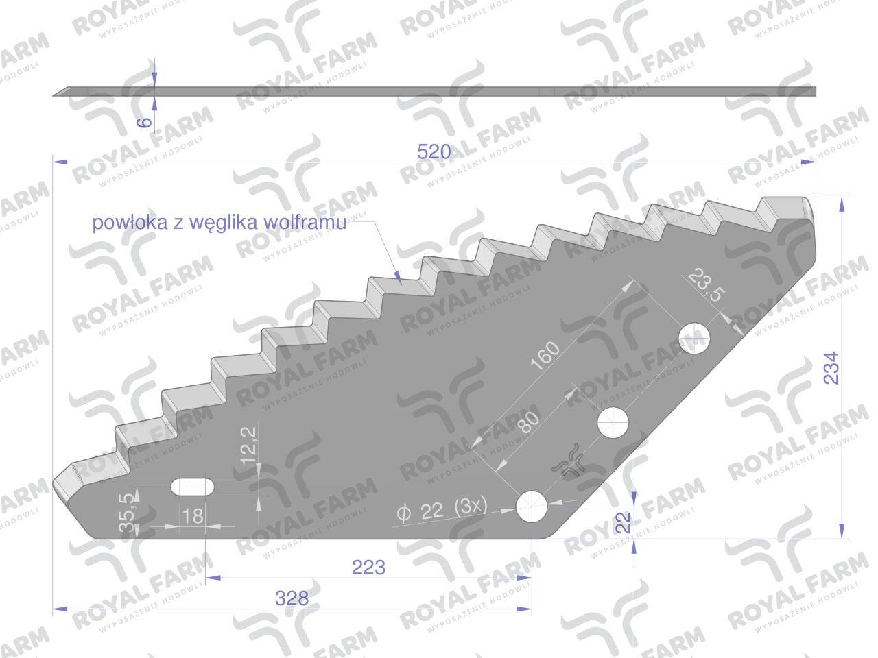 Nóż paszowozu uniwersalny otwór 22mm z węglikiem wolframu standard royal farm