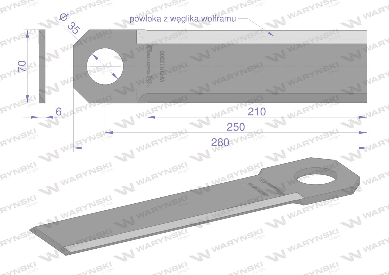 Nóż przystawki do kukurydzy napawany 290x70x6 otwór 35mm olimac drago waryński