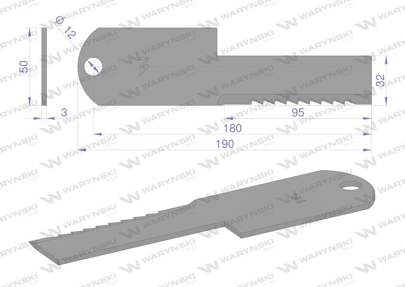Nóż stały rozdrabniacz słomy sieczkarnia uzębiony 190x50x3mm otwór 12 z55611 waryński 25szt