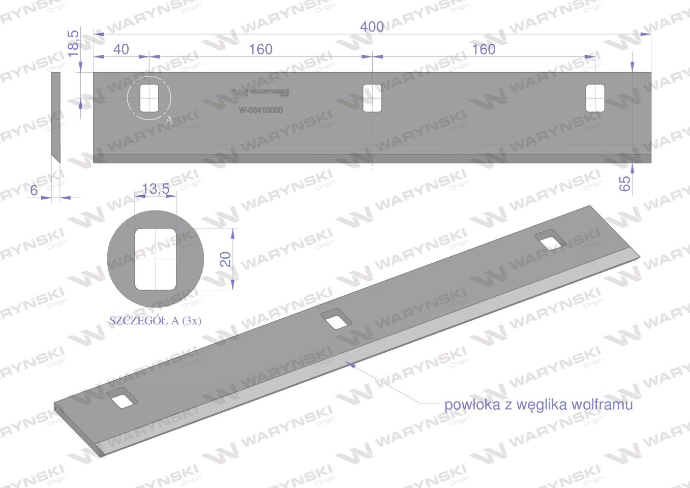 Nóż walca zrywacza napawany 400x63x6 otwory 3x20mm capello waryński