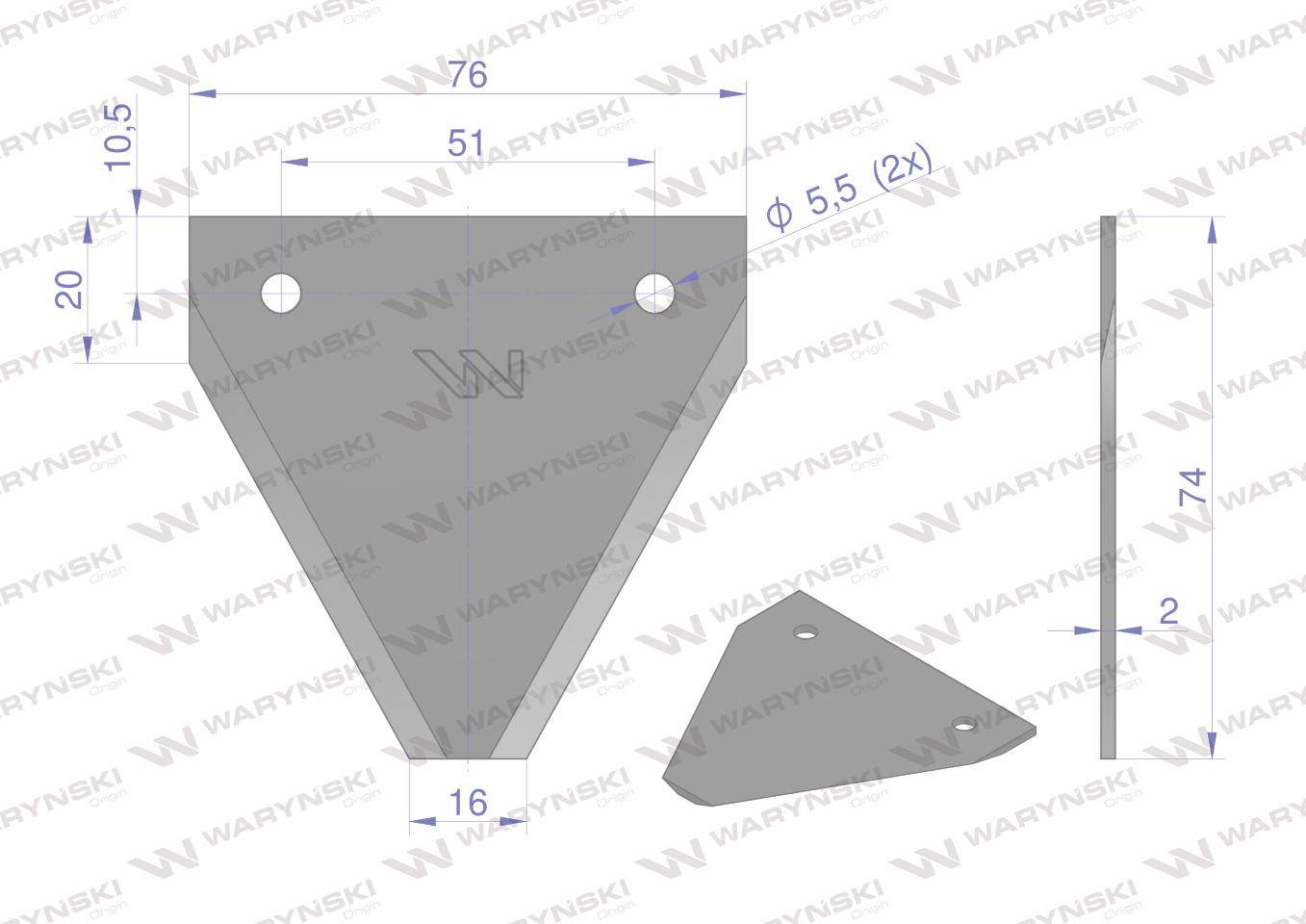 Nóż żniwny 74x76x2mm otwór 5.5 g75 forschnit snopowiazałka warta wc-5 waryński 25szt