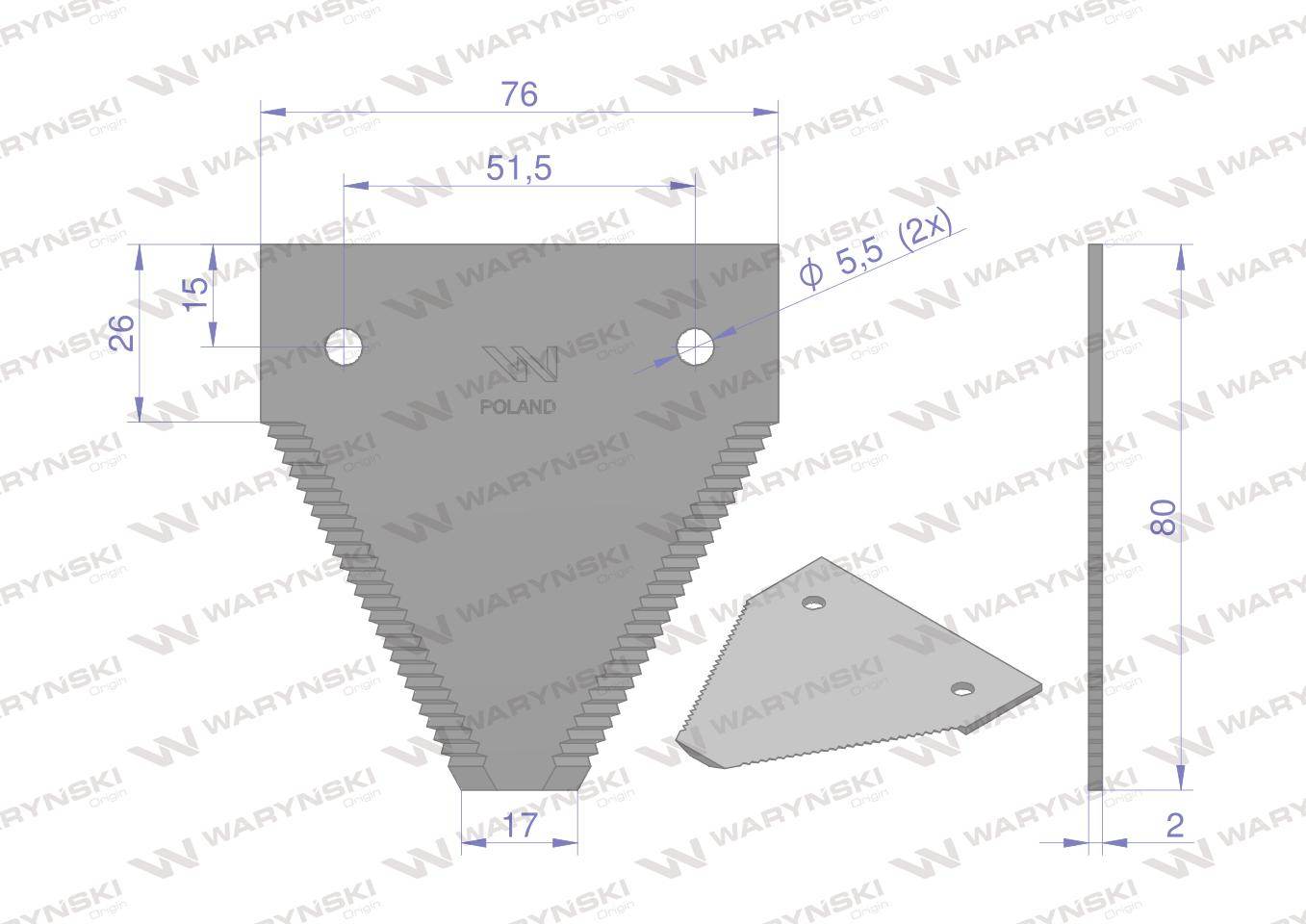 Nóż żniwny 80x76x2mm otwór 5.5 614670.0 claas waryński 25szt