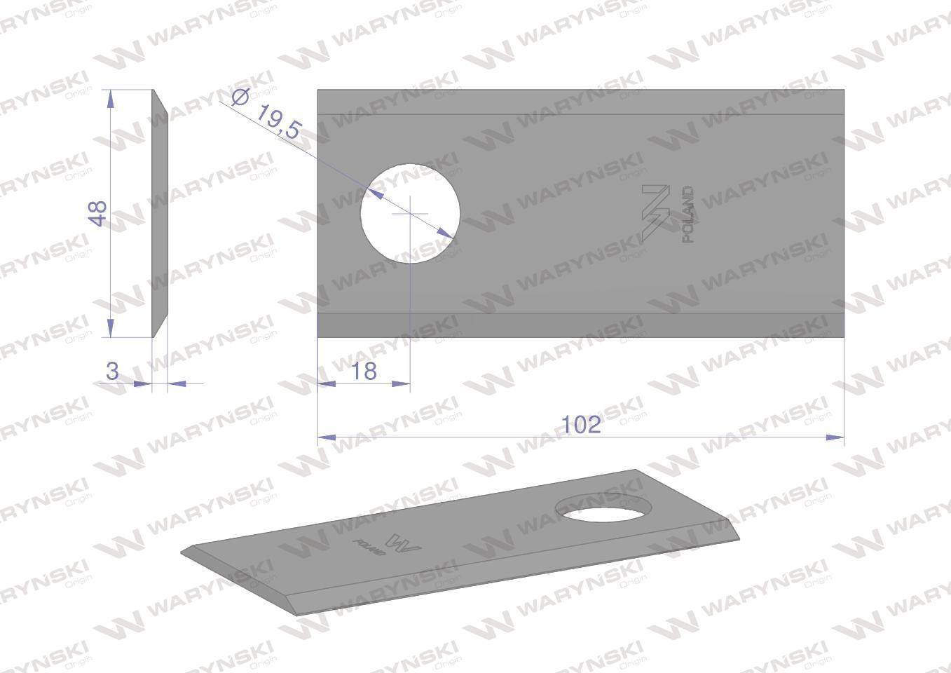 Nóż, nożyk kosiarka rotacyjna zastosowanie samasz 102/48/3mm waryński ( sprzedawane po 25 )