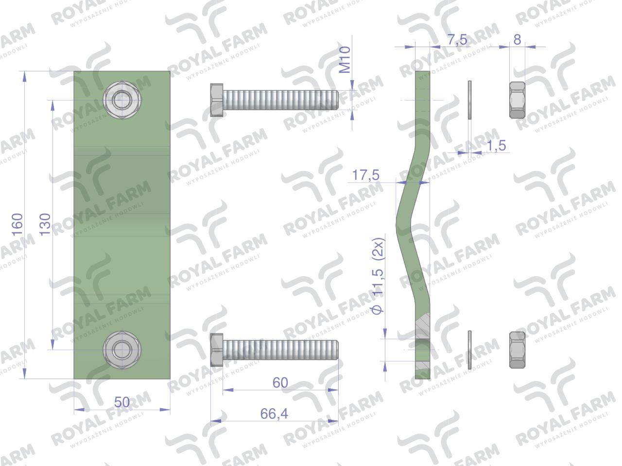 Obejma kompletna poidła 50×8 rf-20908101 rf-20908106 royal farm 5szt