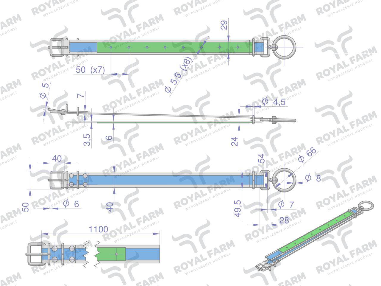 Obroża dla cieląt110 cmx4 cm z okrętką 8mm royal farm