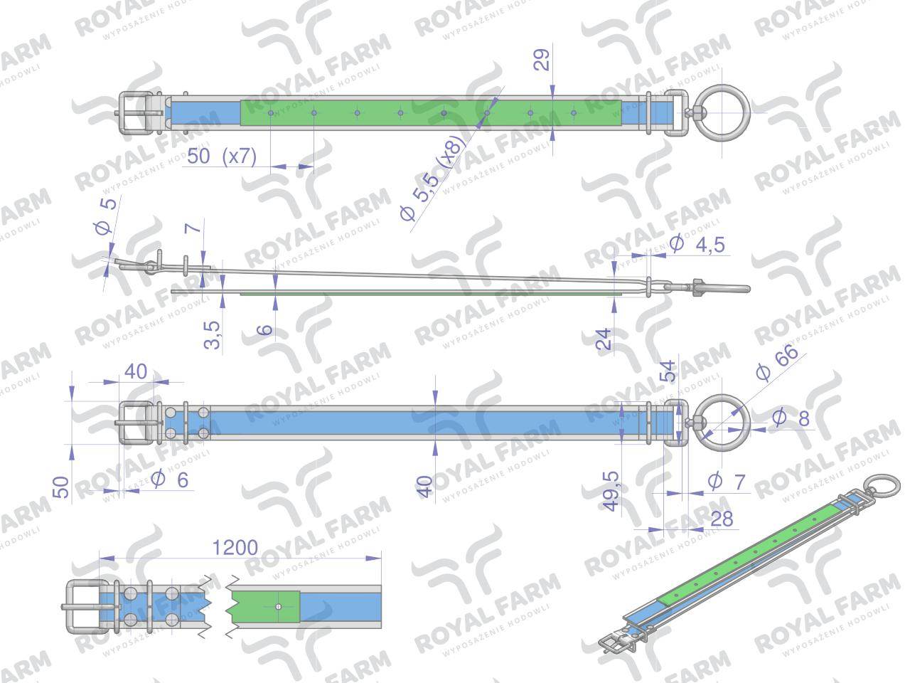 Obroża dla cieląt120 cmx4 cm z okrętką 8mmroyal farm