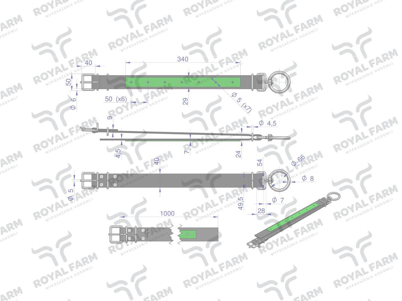 Obroża100 cmx4 cm z okrętką 8mm royal farm