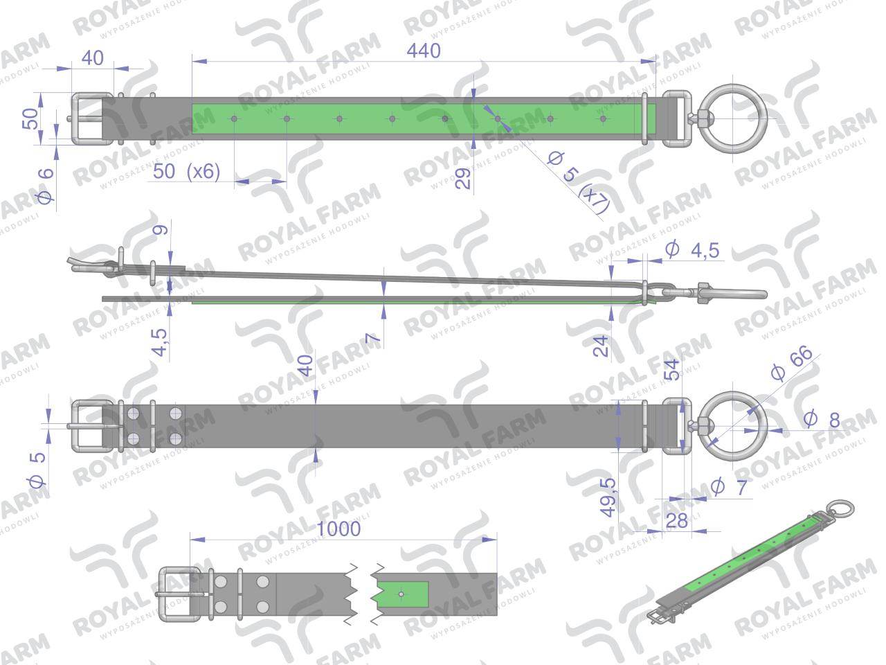 Obroża110 cmx4 cm z okrętką 8mm royal farm