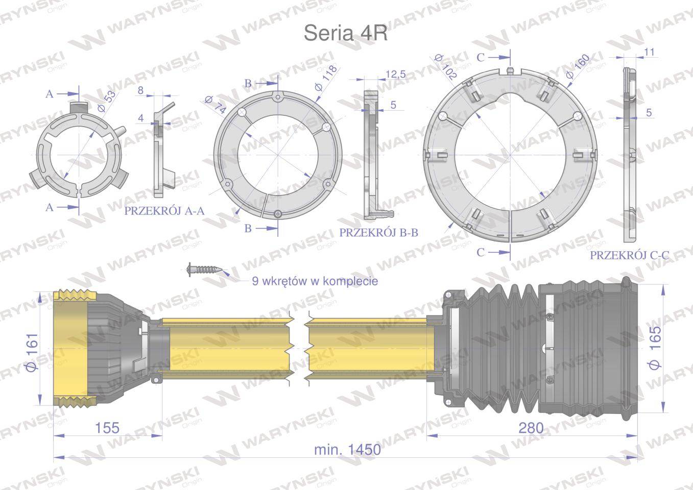 Obudowa wału przegubowo-teleskopowego szerokokątnego uniwersalna długość seria 4r waryński