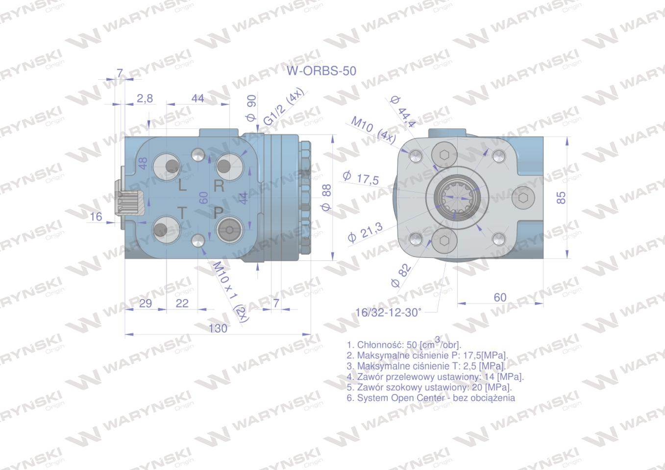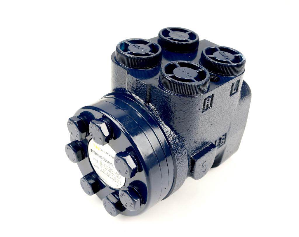 Hydrostatyczny zawór skrętu w-orbs-50 (140 bar / max.175 bar) waryński. Orbitrole serii w-orbs mają zwartą i solidną konstrukcję, pozwalającą na lekką i płynną pracę układu kierowniczego. Wspomaganie odbywa się bez szarpania, nawet pod dużym obciążeniem. System open center (on) non-reaction – w pozycji neutralnej pompa jest odciążona, olej swobodnie powraca na zbiornik, siły działające na koła nie wywołują żadnej reakcji. Wspomaganie hydrauliczne gwarantuje wysoką precyzję kierowania sprzętem przy zachowaniu niewielkiej awaryjności.