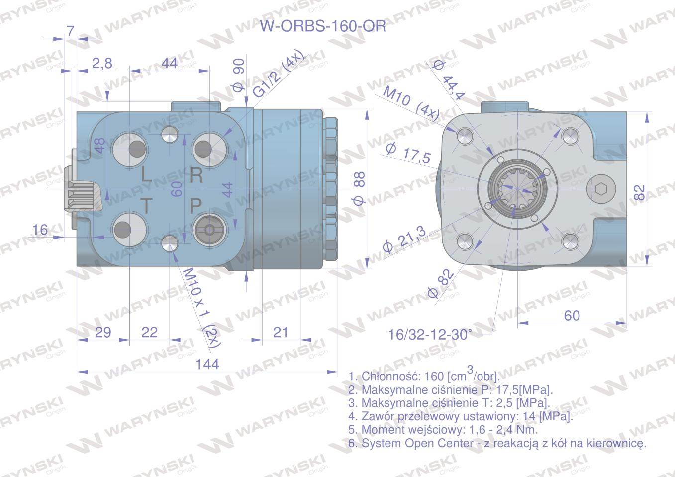 Orbitrol hydrauliczny w-orbs-or 160 cm3/obr z zaworami system open center z reakcją z kół na kierownicę waryński