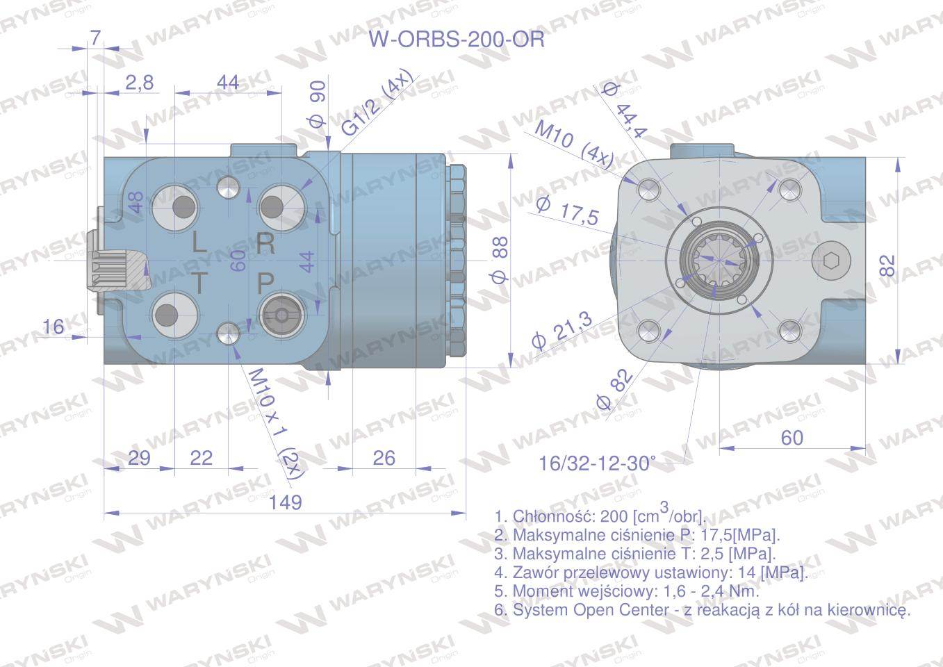 Orbitrol hydrauliczny w-orbs-or 200 cm3/obr z zaworami system open center z reakcją z kół na kierownicę waryński